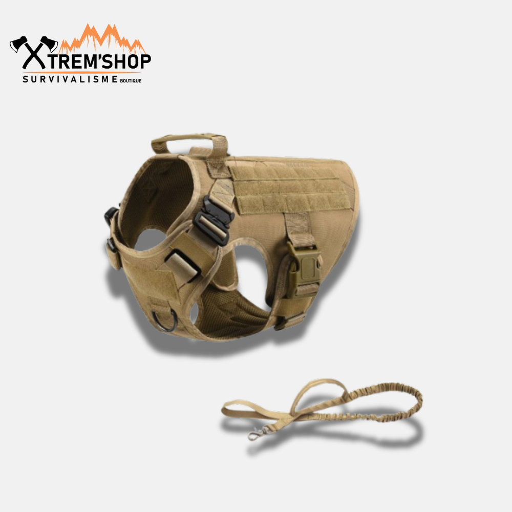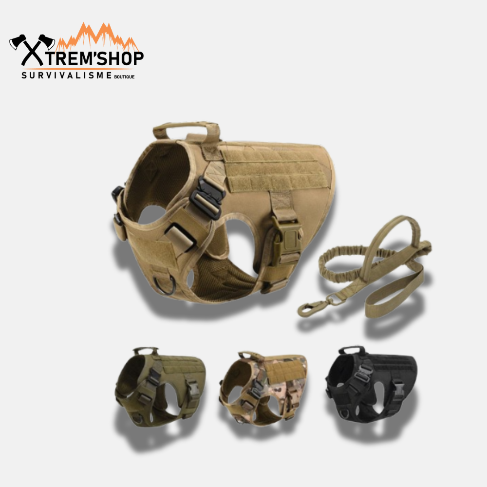 Le Harnais Tactique Chien de Survie est l'équipement de choix pour assurer confort et sécurité à votre chien, tout en vous permettant de garder un contrôle total lors de vos aventures. Offrez-lui le meilleur, commandez dès aujourd'hui !