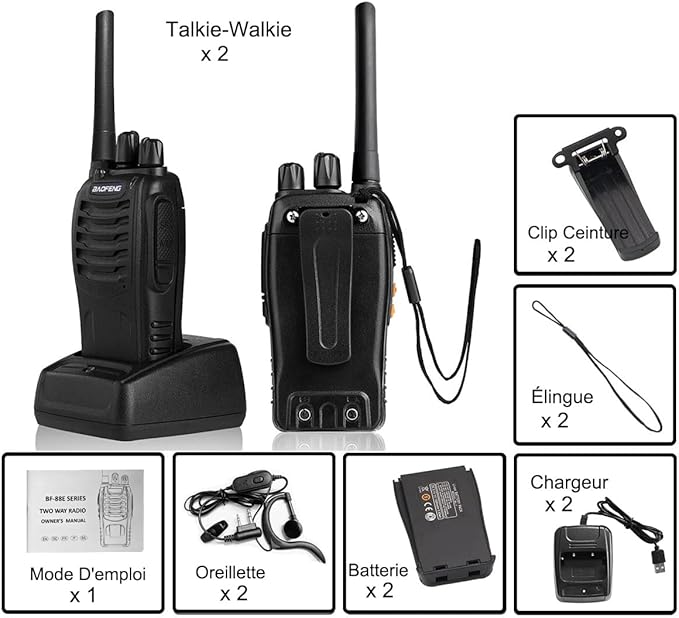 Découvrez le Talkie-Walkie Baofeng Professionnel, l'allié parfait pour vos activités de plein air, que ce soit la chasse, le camping ou toute autre aventure en extérieur. Ce pack de 2 talkies-walkies offre une communication claire et fiable sur de longues distances, même dans les environnements les plus difficiles.
